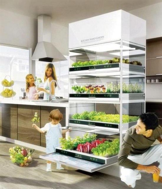 Một vườn rau sinh thái công nghệ cao nhưng rất thực tế trong nhà bếp. Đây cũng là ý tưởng không mới, nhưng chắc chắn bạn phải bỏ ra khá nhiều công sức để đầu tư cho tổ ấm của mình.
