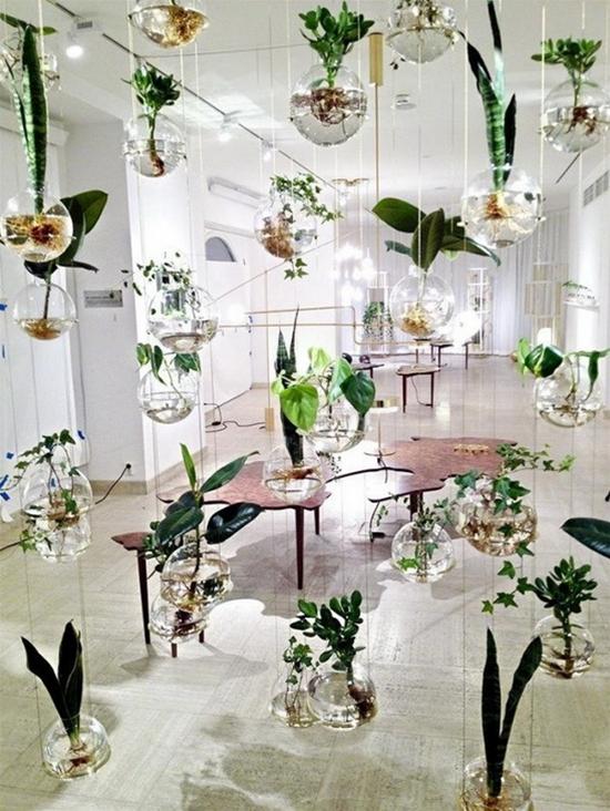 Một khu vườn treo tinh tế nếu bạn không muốn dính dáng gì tới đất cát. Các loài cây trồng trong nước rất phù hợp với các không gian sống trong nhà. Giải pháp trồng cây thủy sinh trong chậu thủy tinh cũng không có gì phức tạp. Bây giờ, điều quan trọng là bạn sẽ treo chúng lên như thế nào?!