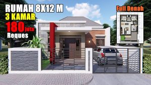 Mẫu nhà cấp 4 mái nhật diện tích 8x12m thiết kế 3 phòng ngủ