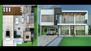 Mẫu nhà 2 tầng kiểu dáng hình hợp hiện đại diện tích 10x20m