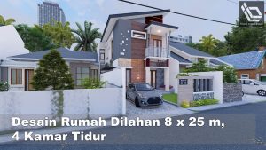Mẫu thiết kế nhà ống 2 tầng mái lệch, diện tích 8 x 25 m 4 phòng ngủ
