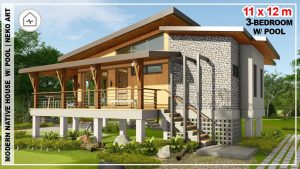 MẪU THIẾT KẾ NHÀ THIÊN NHIÊN HIỆN ĐẠI 3 PHÒNG NGỦ CÓ HỒ BƠI – 11x12m