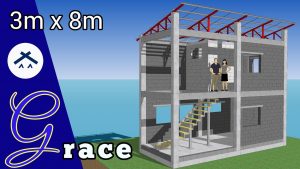 Thiết kế nhà nhỏ 3x8m (Nhà 2 tầng) – Bản trình bày 3D của một [...]