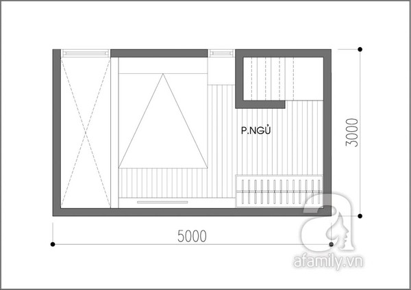 Ngôi nhà xây thêm của bạn có diện tích khá khiêm tốn: 3×5 mét. Tuy nhiên không gian này lại có lợi thế là khuôn phòng vuông vức nên việc bố trí nội thất hợp lý không khó. Ngoài ra các không gian chức năng cũng dễ được tiếp cận với ánh sáng từ khu vườn phía trước nhà.