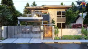 Mẫu Nhà 2 Tầng Diện Tích 10x25m Thiết Kế 3 Phòng Ngủ và 1 Garage oto
