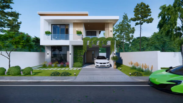 • Mẫu nhà 2 tầng sân vườn: Tầng trệt mở kết nối với sân vườn, tận dụng ánh sáng tự nhiên và tạo không gian thư giãn ngoài trời; phù hợp với gia đình thích sống xanh.