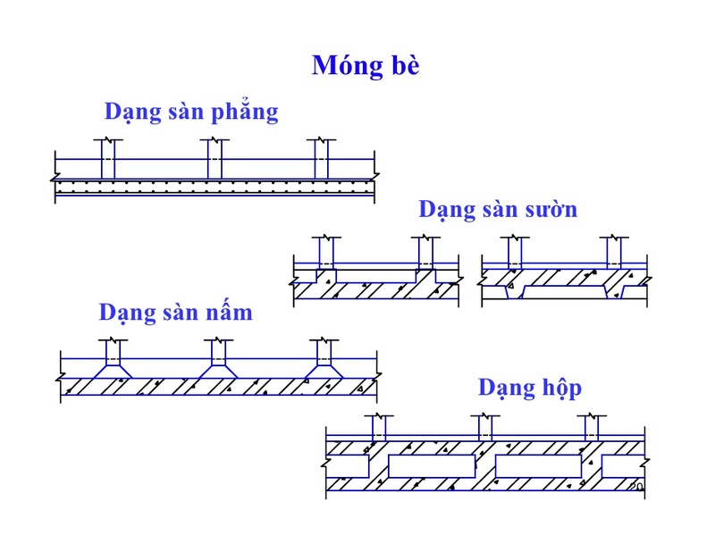 d. Móng bè: Nếu trong tình hình đất lún và địa chất không tốt, hay xây công trình cao tầng thì giải pháp móng bè được các KTS áp dụng để công trình có độ an toàn cao.