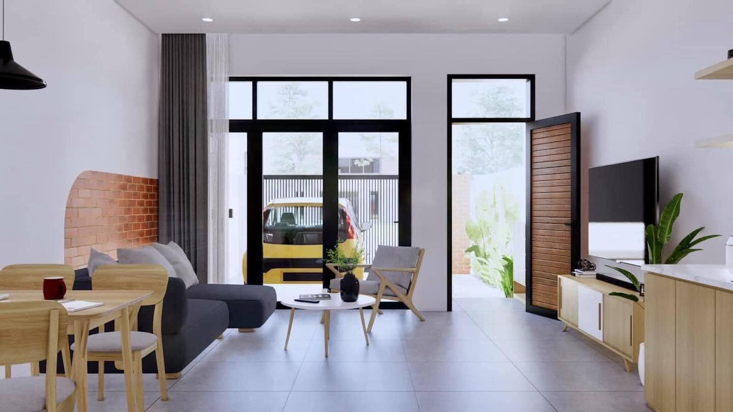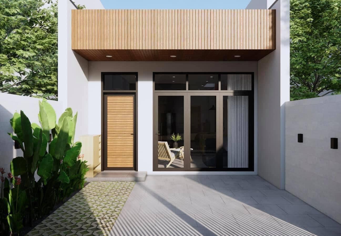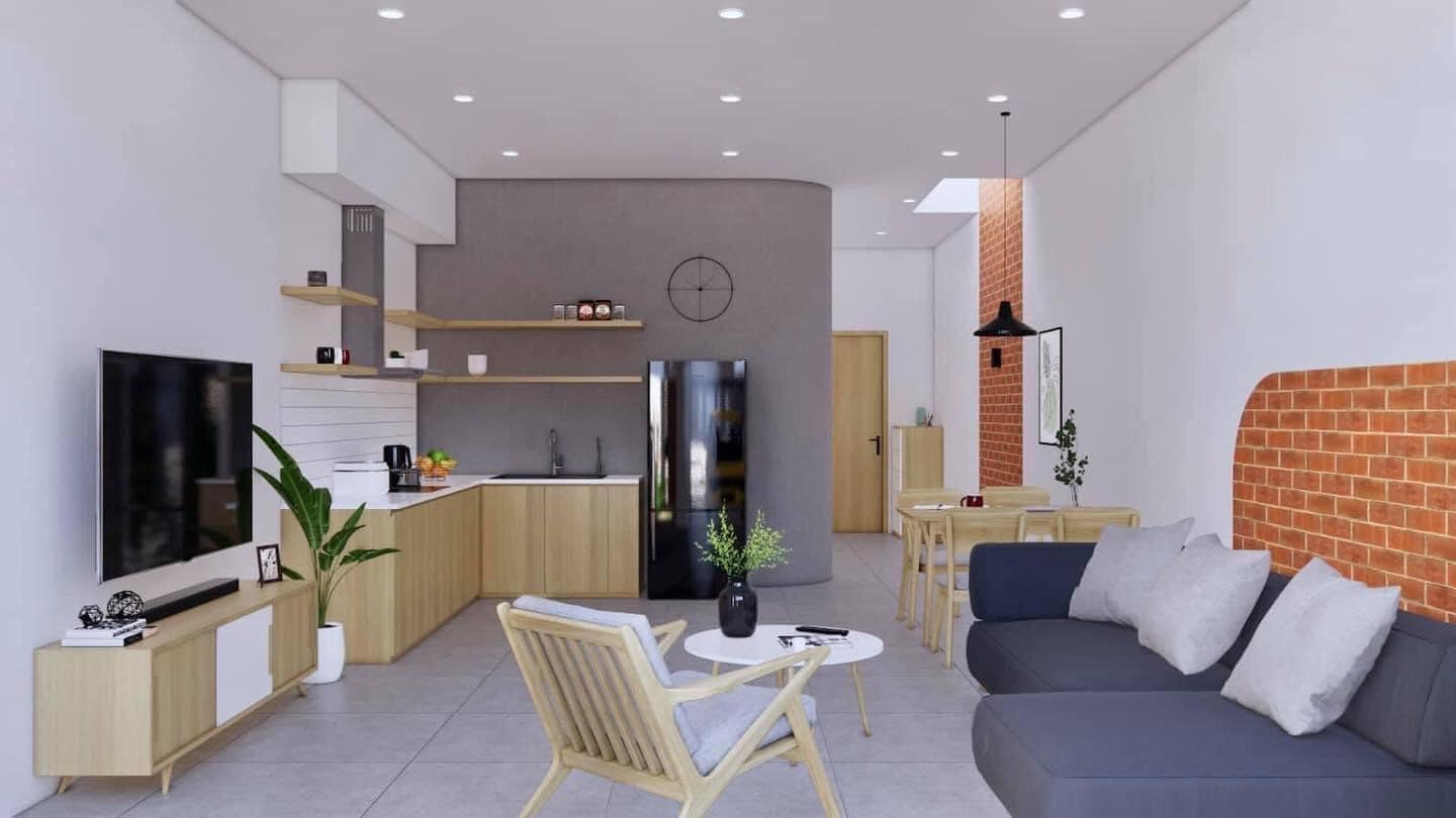 Công ty xây dựng Nguyên giới thiệu Mẫu nhà cấp 4 diện tích 5x15m 2 phòng ngủ hiện đại, được thiết kế trên khuôn viên đất 5x20m, với diện tích xây dựng 5x15m được bố trí công năng 2 phòng ngủ, 1 phòng khách rộng 40m2, bếp được bố trí để tiết kiệm diện tích cho ngôi nhà thiết kế hiện đại.