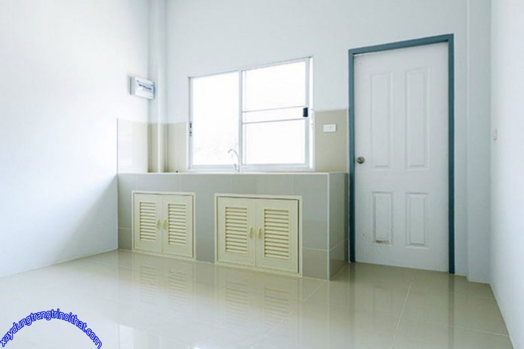 Bên trong nhà cũng sử dụng màu trắng từ màu sơn lẫn nền gạch.