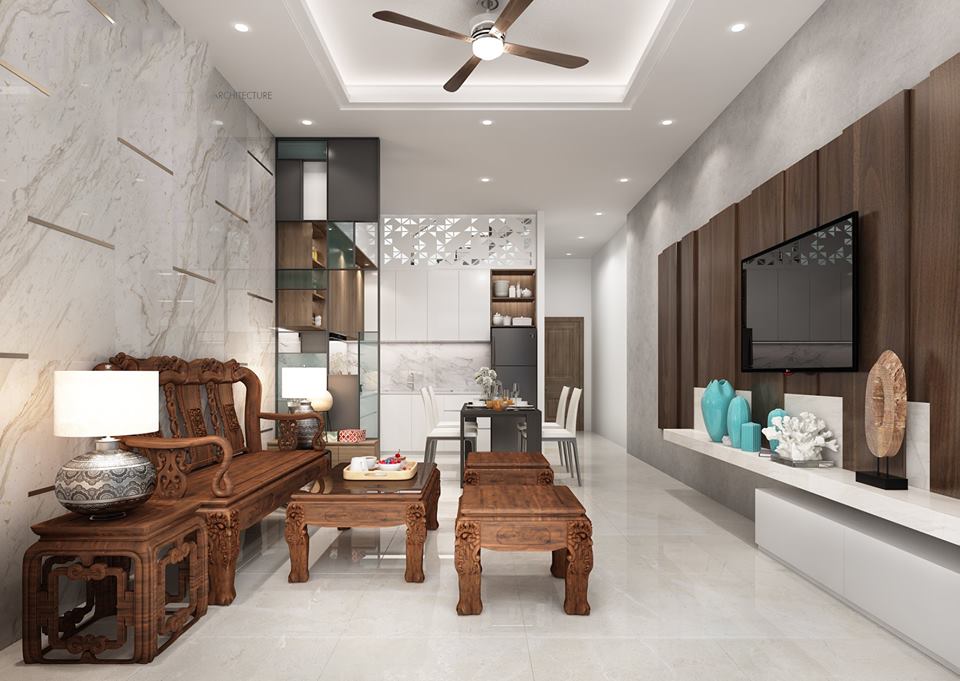 Nội thất phòng khách ngôi nhà ống 3 tầng