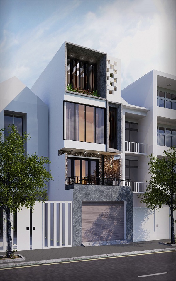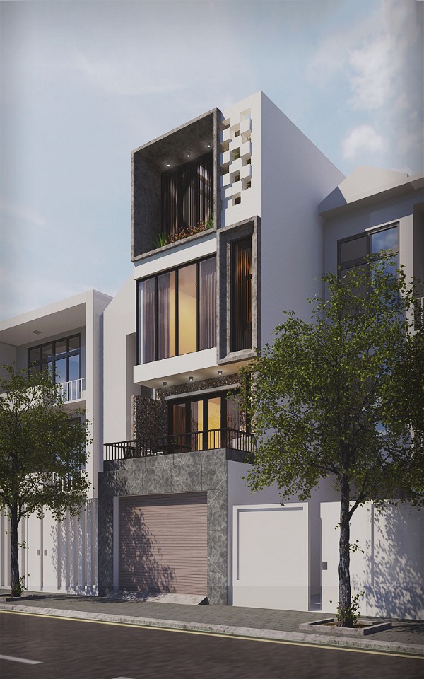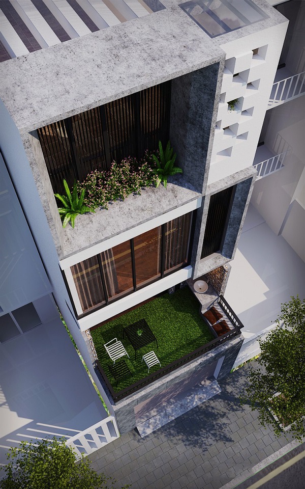 Phối cảnh 3D – Mẫu thiết kế nhà ống 4 tầng 4x15m lệch tầng