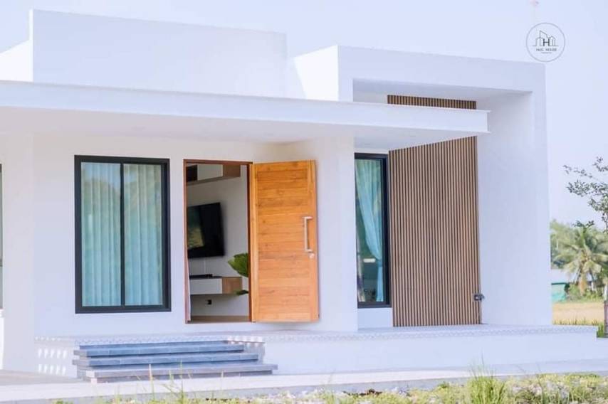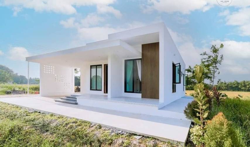 Công ty xây dựng Nguyên gới thiệu Ngôi nhà Trệt Cấp 4 1 tầng mặt tiền 12m có Gara Phong cách hiện đại tối giản, 3 phòng ngủ, 2 nhà vệ sinh, diện tích sử dụng 120m2 có thiết kế nhà đẹp và ý tưởng nhà tuyệt vời. Ngôi nhà 1 tầng mà chúng tôi mang đến hôm nay là thiết kế nhà 1 tầng theo phong cách hiện đại kết hợp sự tối giản để tạo nên sự phù hợp hoàn hảo. Hình khối ngôi nhà vuông vức, hình hộp, tường ngoài tông màu trắng dễ chịu cho mắt. Sử dụng cửa gỗ Cửa sổ kính cao thêm một chút hiện đại. Trước nhà có gara ô tô lợp tôn, vách làm thông thoáng. Nhà nâng tầng nhẹ đủ đẹp. Xung quanh nhà được đổ bê tông. Và còn có ban công trước nhà. Cùng tiếp tục ngắm người đẹp nhé.