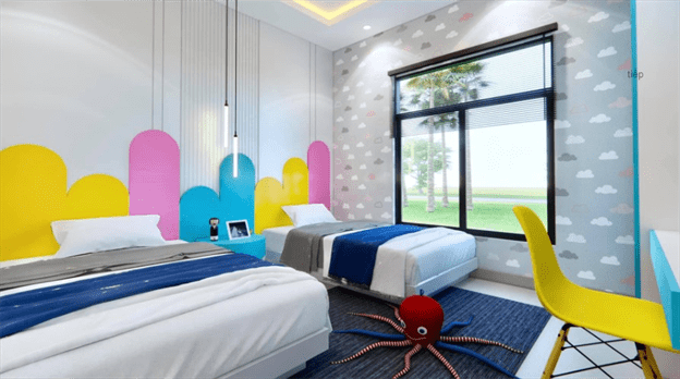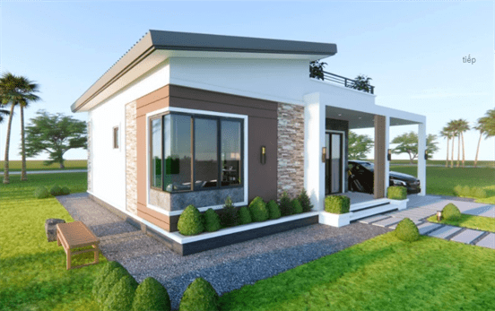 Công ty xây dựng Nguyên giới thiệu đến quý khách hàng mẫu Nhà cấp 4 mái lệch sân vườn nông thôn mặt tiền 10m thích hợp cho nghĩ dưỡng. Công năng được bố trí 2 phòng ngủ, 1 phòng ngủ lớn 20m2 giường đôi được bố trí 2 giường ngủ. 1 phòng ngủ nhỏ 16m2. Phòng khách và phòng bếp được bố trí không gian chung rộng rải thoải mái cho gia đình 4 người.