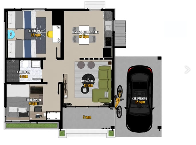 Với thiết kế mẫu nhà vườn cấp 4 ngày càng đầy đủ các tính năng đã “giải cứu” được mọi diện tích của khu đất. Đồng thời, đã làm thay đổi những kết cấu thông thường từ kiểu nhà cấp 4 truyền thống. Đặc trưng thứ hai của mẫu thiết kế này, đó là tập trung lớn vào khoảng phần sân vườn phía trước và cây cối xung quanh.