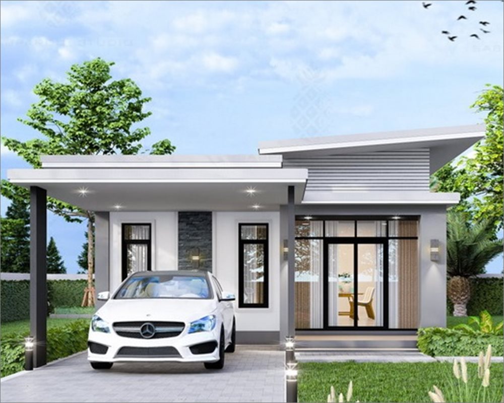 Mẫu Nhà Cấp 4 Mái Lệch Nông Thôn Diện Tích 7x8m Thiết Kế 2 Phòng Ngủ