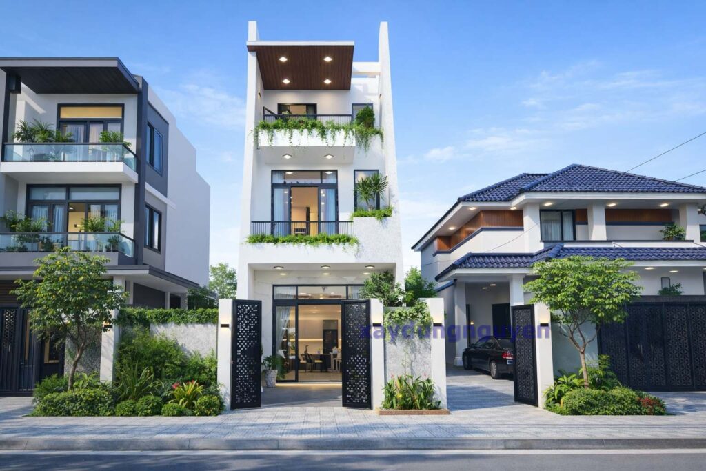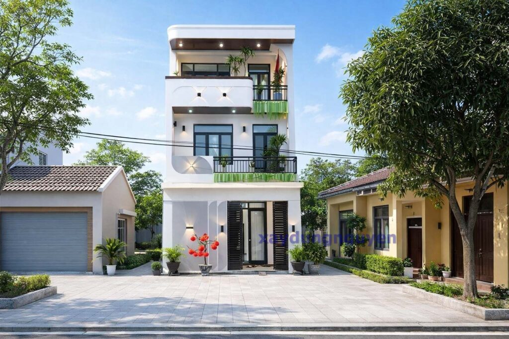 Ngoài ra, nhiều mẫu nhà ống 3 tầng còn tích hợp ban công rộng, sân thượng xanh, gara ô tô và hệ thống chiếu sáng thông minh, phù hợp với nhịp sống đô thị hiện đại.