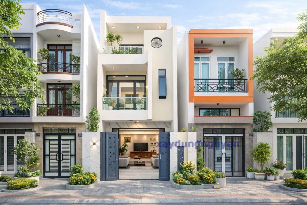 Bộ sưu tập 40 mẫu nhà ống 1 trệt 2 lầu năm 2026 mang đến đa dạng phong cách từ hiện đại, tối giản, tân cổ điển nhẹ đến nhà phố xanh.